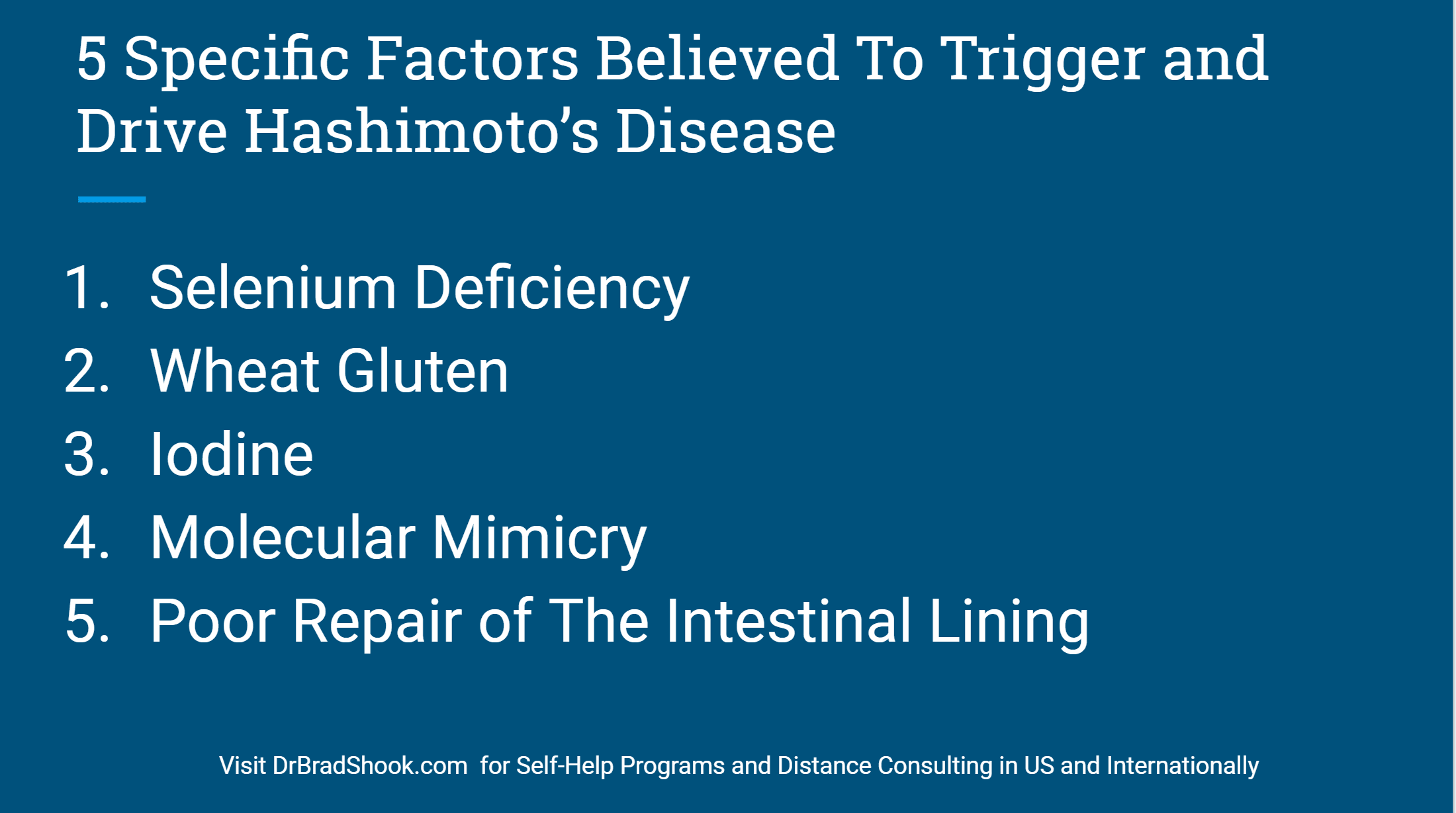 Of the suspected Hashimoto's disease causes, there are five factors that sit at the top of the list.
